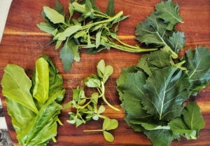 - Cut, remove and discard the hard stems from mustard greens, bathua and spinach. No need to take off the soft, tender stems.