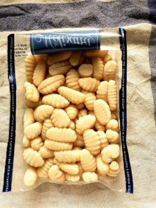 - Next add the uncooked gnocchi straight from the packet. Keeping the flame to a medium – high stir the gnocchi in the butter mix for a minute before adding the sundried tomatoes. You may add 2 Tsp oil from the oil of the jarred sundried tomatoes. It definitely add to the taste. Cook for another minute to infuse and release flavours into the gnocchi.